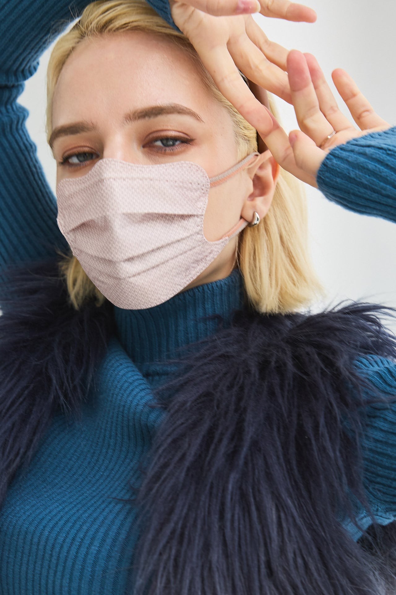 ・D.masqueの本体部分は三層構造で構成されており、採用しているフィルターは、花粉やホコリはもちろんのことウイルス飛沫を99%ガードできる高性能のフィルターを採用しています。